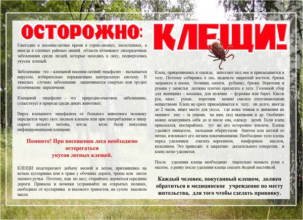 Уважаемые жители района! Начинается прививочная кампания по профилактике клещевого вирусного энцефалита.
