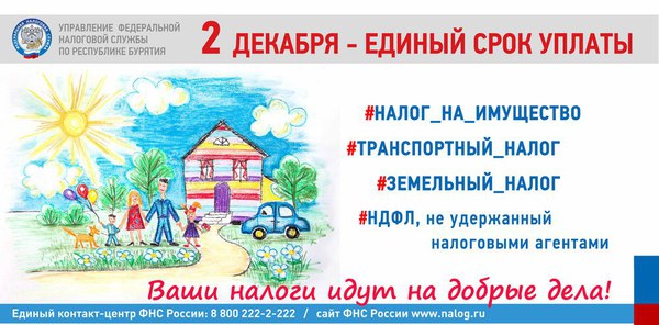 2 ДЕКАБРЯ - СРОК УПЛАТЫ ИМУЩЕСТВЕННЫХ НАЛОГОВ ФИЗИЧЕСКИМИ ЛИЦАМИ ЗА 2018 ГОД